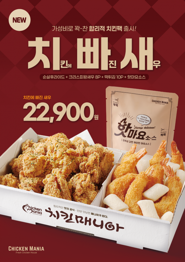 치킨매니아는 역대급 가성비로 꽉 찬 "치킨에 빠진 새우(일명. 치.빠.새)"라는