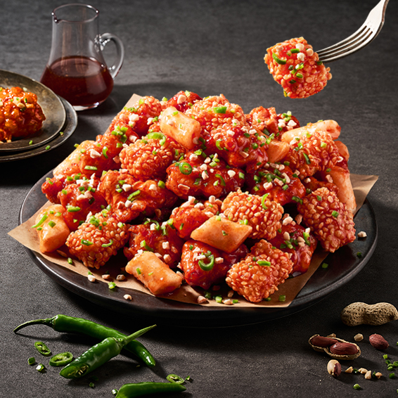 추억의 닭강정 소스와 크런치한 오징어튀김,