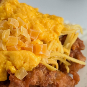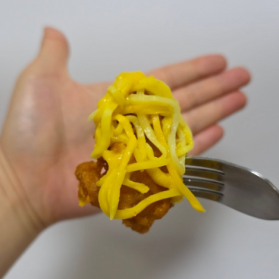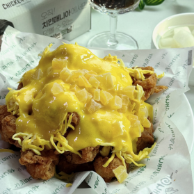 ※냉동 망고채는 수분기를 반드시 제거하고 치킨에 골고루 부어주세요!