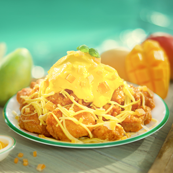그 위에 쫄깃한 망고 다이스까지!!! 올여름 치킨과 망고의 환상조합