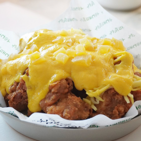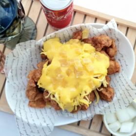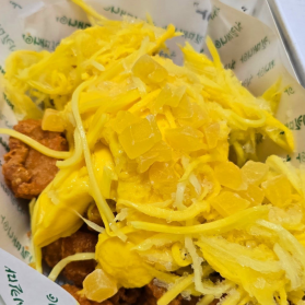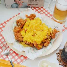 ※냉동 망고채는 수분기를 반드시 제거하고 치킨에 골고루 부어주세요!