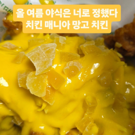 그 위에 쫄깃한 망고 다이스까지!!! 올여름 치킨과 망고의 환상조합
